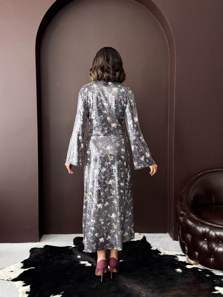 Topshow - Toptan Çiçek Baskılı Pullu Uzun Etek