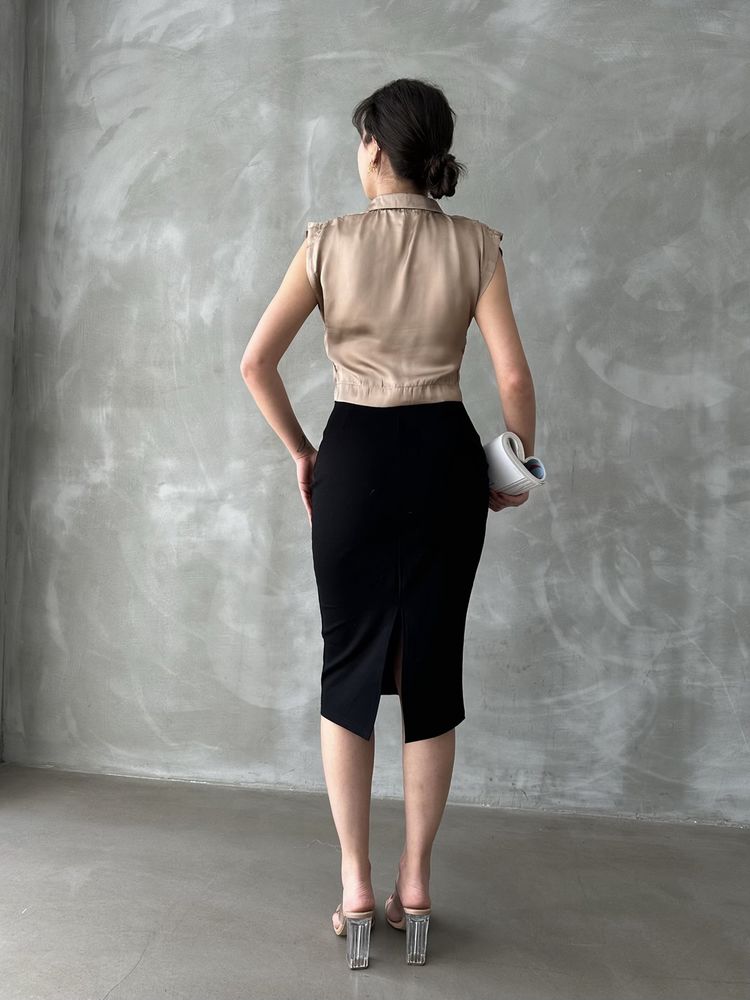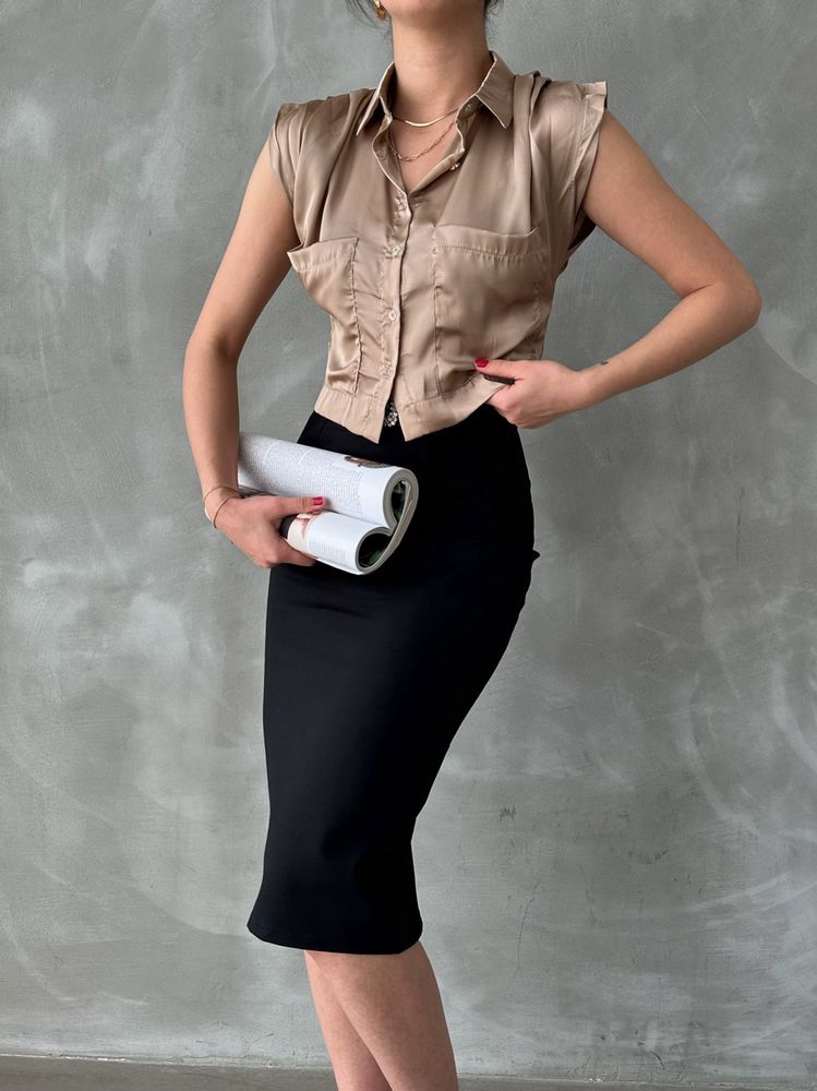 Topshow Vizon Sıfır Kollu Saten Göbek Üstü Toptan Gömlek