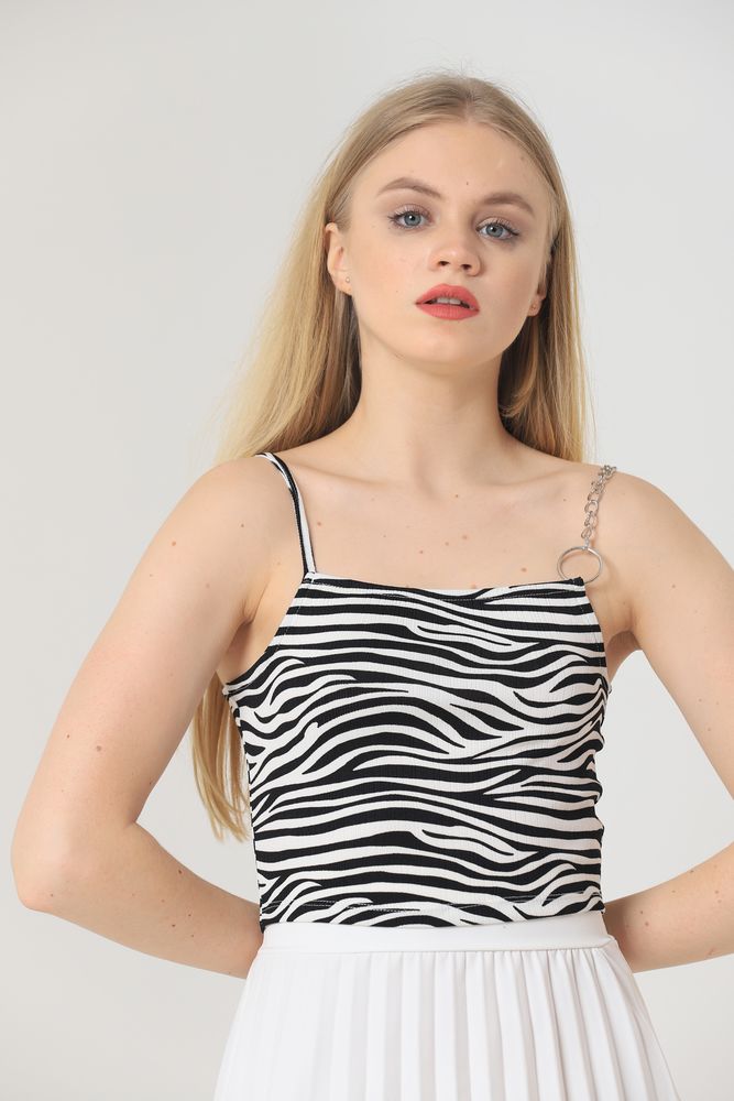 Topshow Zebra Zincir Detaylı Toptan Bluz