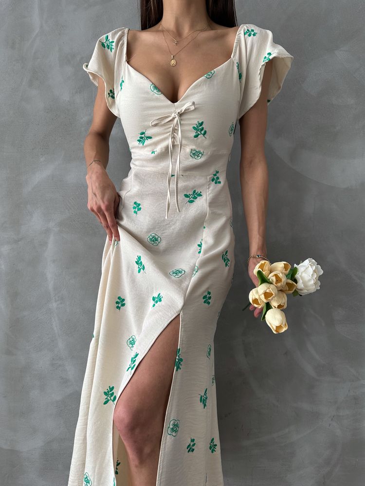 Topshow Zümrüt Desen Kolu Fırfırlı Bağlamalı Toptan Elbise