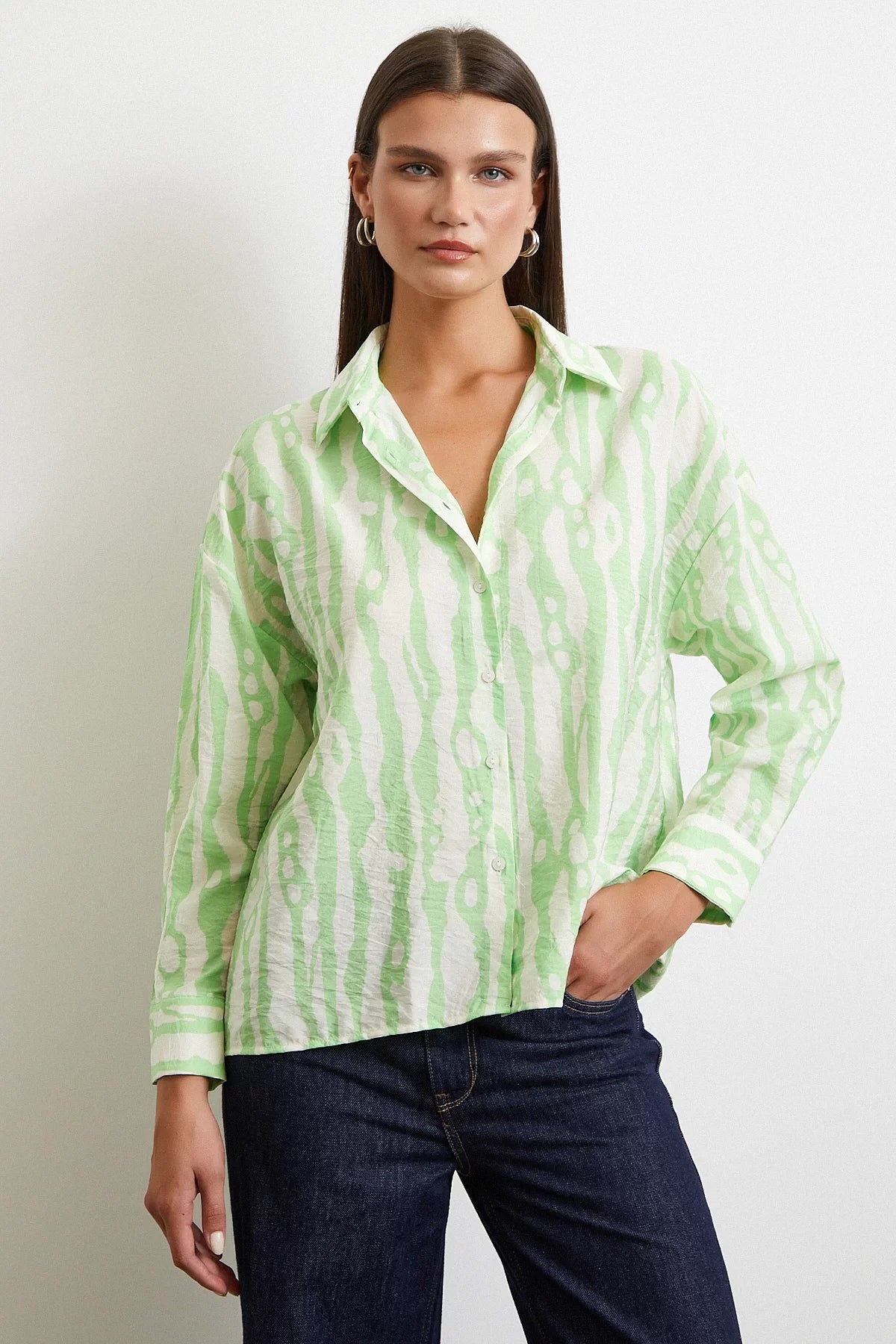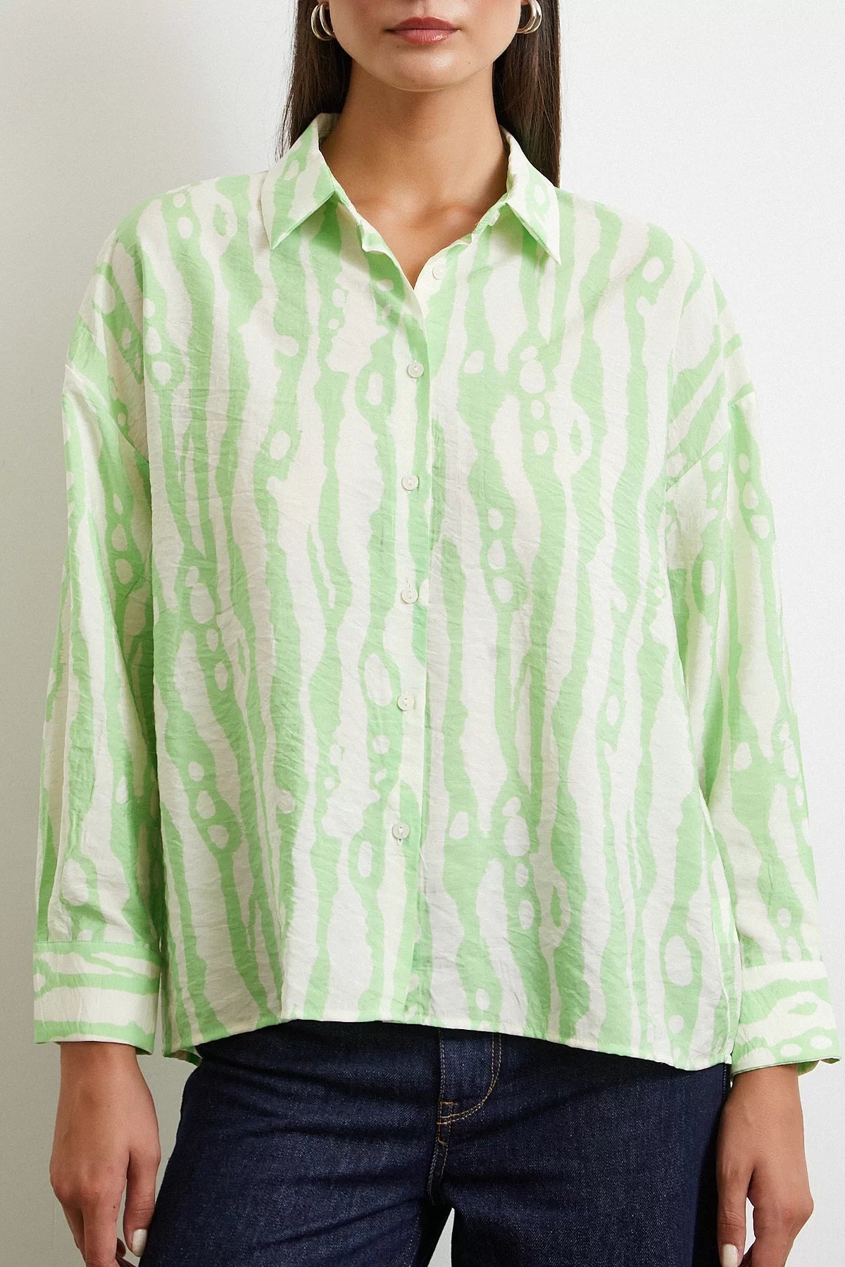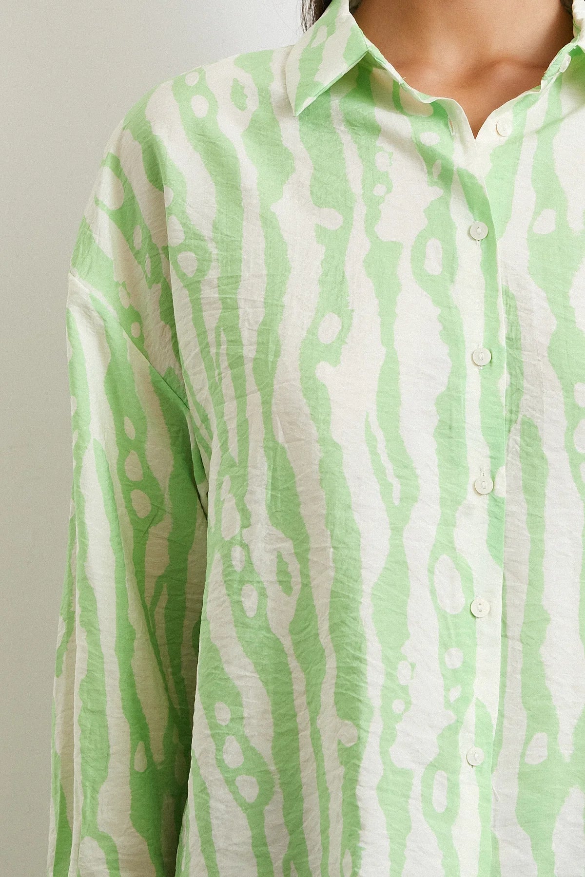 Zebra Desen Modal Gömlek - Yeşil