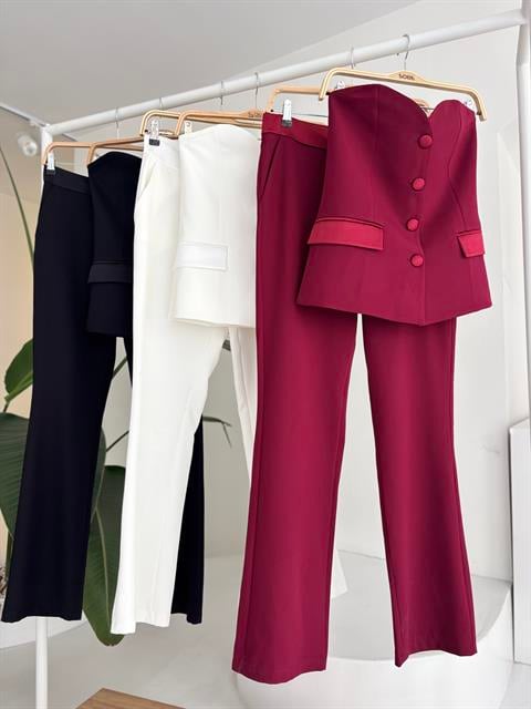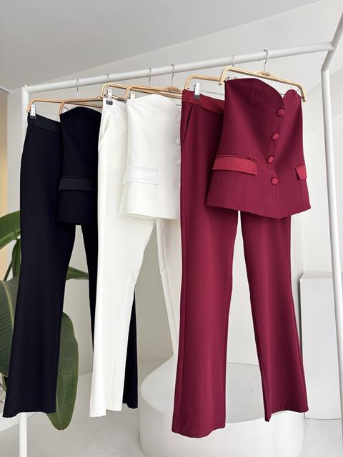 Saten Detaylı Büstiyer Pantolon Takım 10024