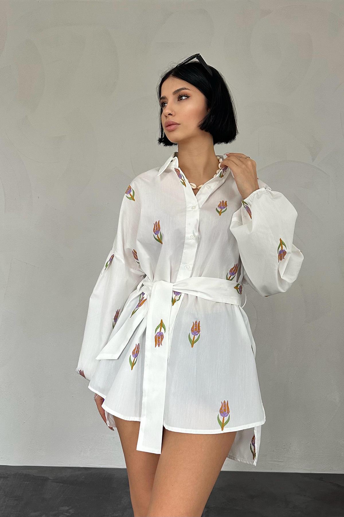 Toptan Hardal Vual Metraj Nakış Kuşaklı Gömlek