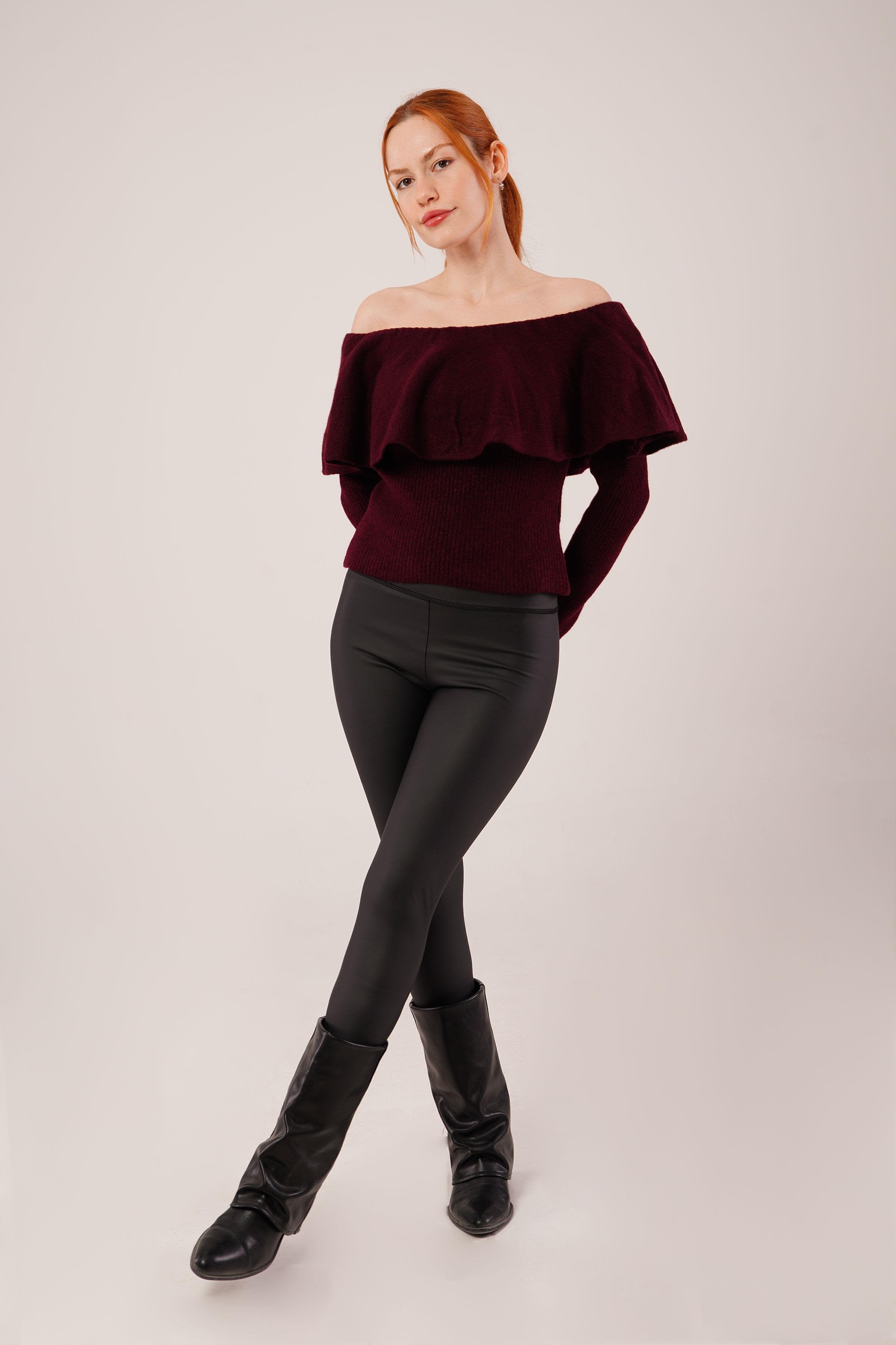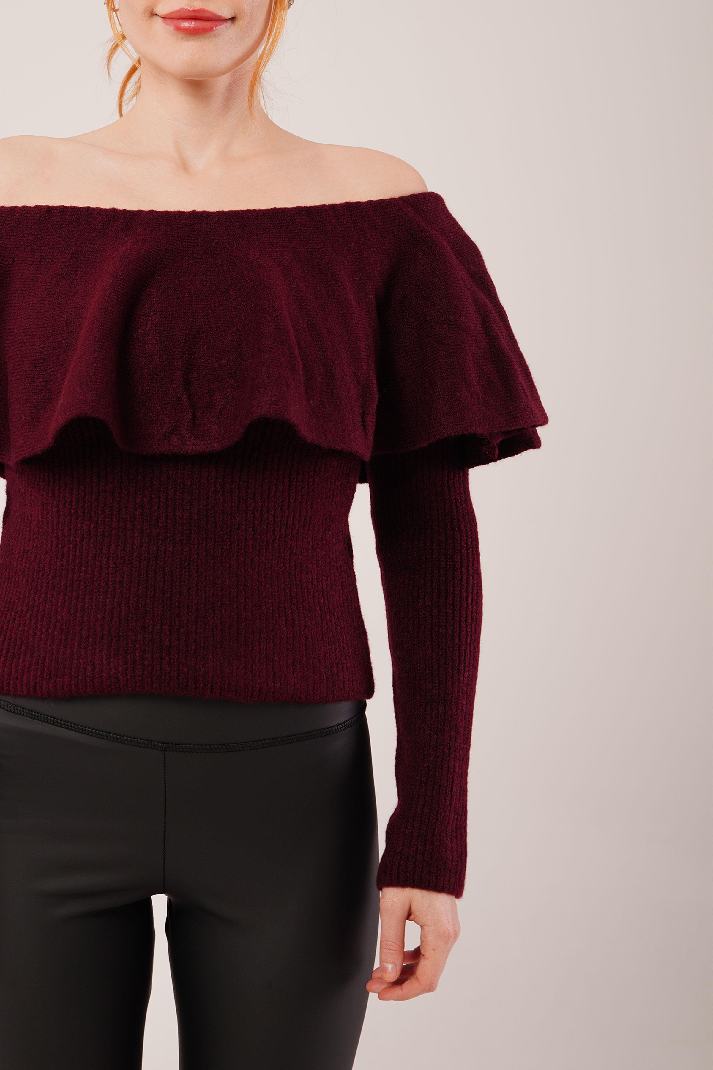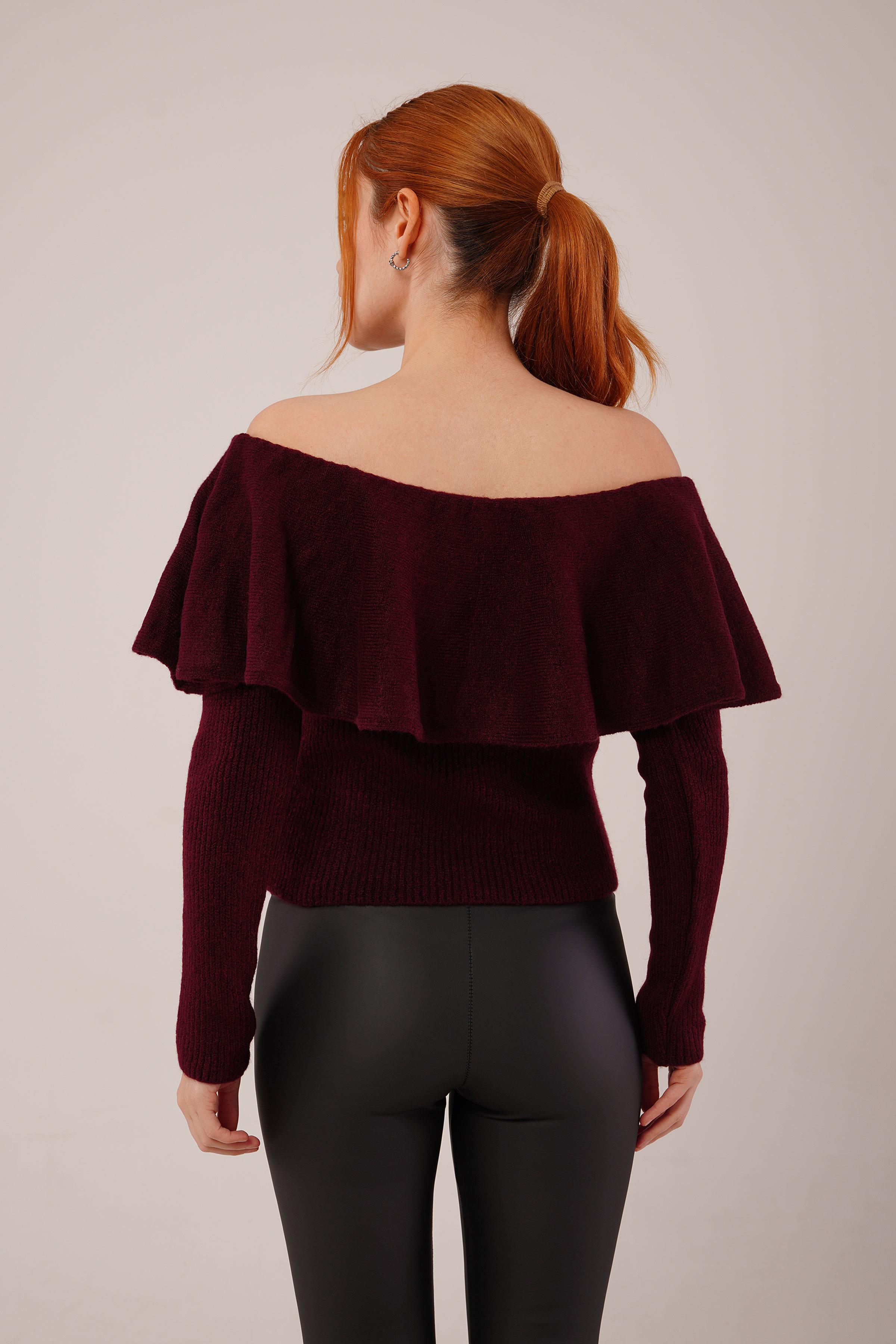 Madonna Yaka Fırfır Detaylı Toptan Bordo Kazak