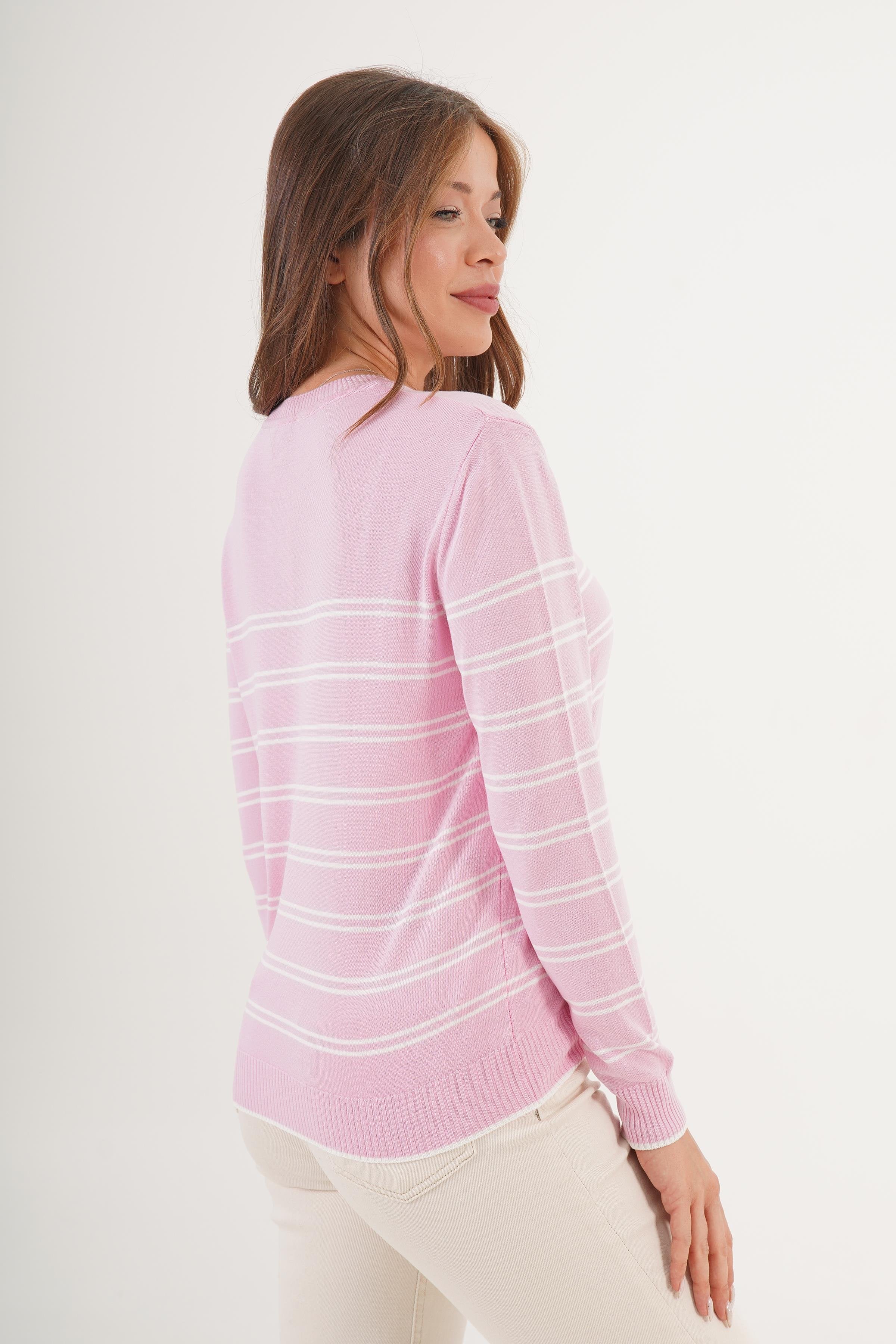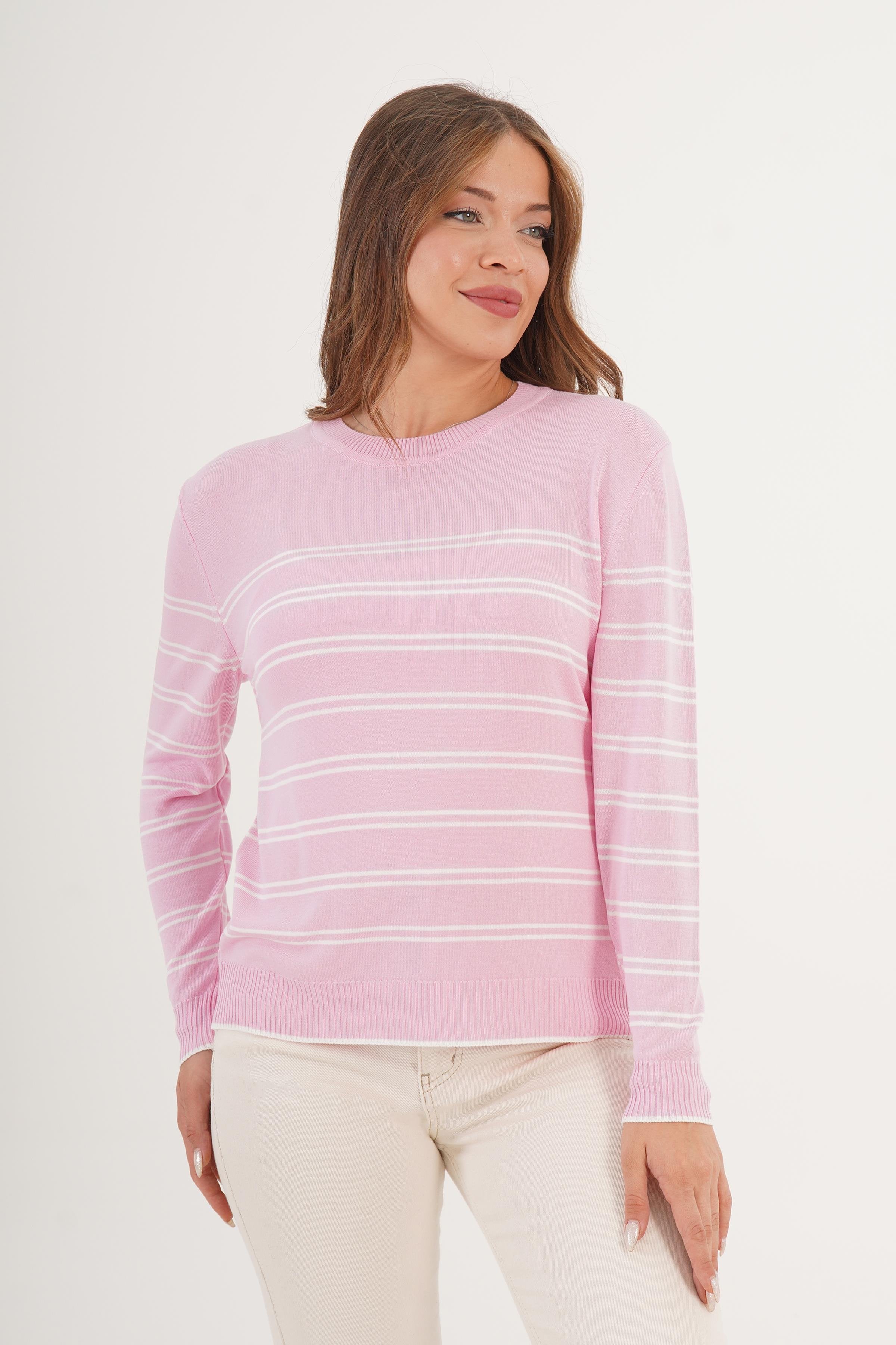 Çizgili Bisiklet Yaka Toptan Pembe Triko Kazak
