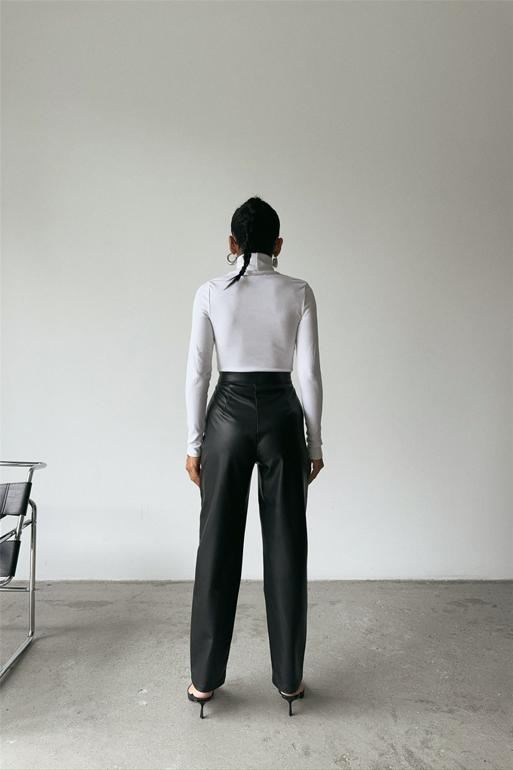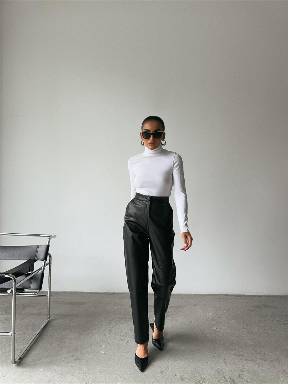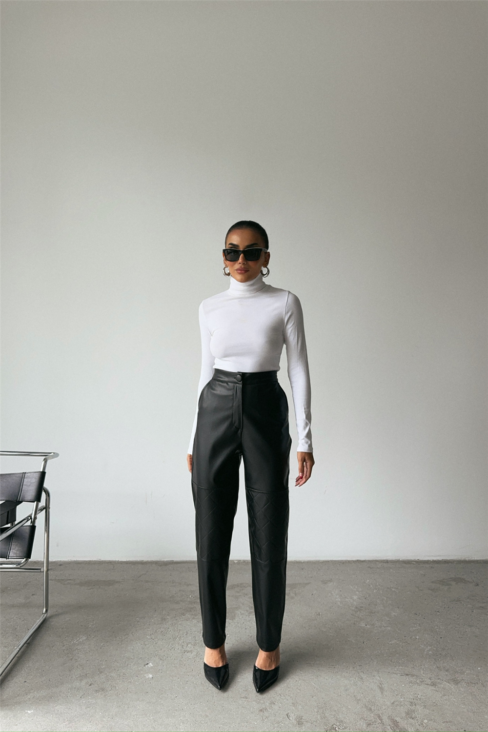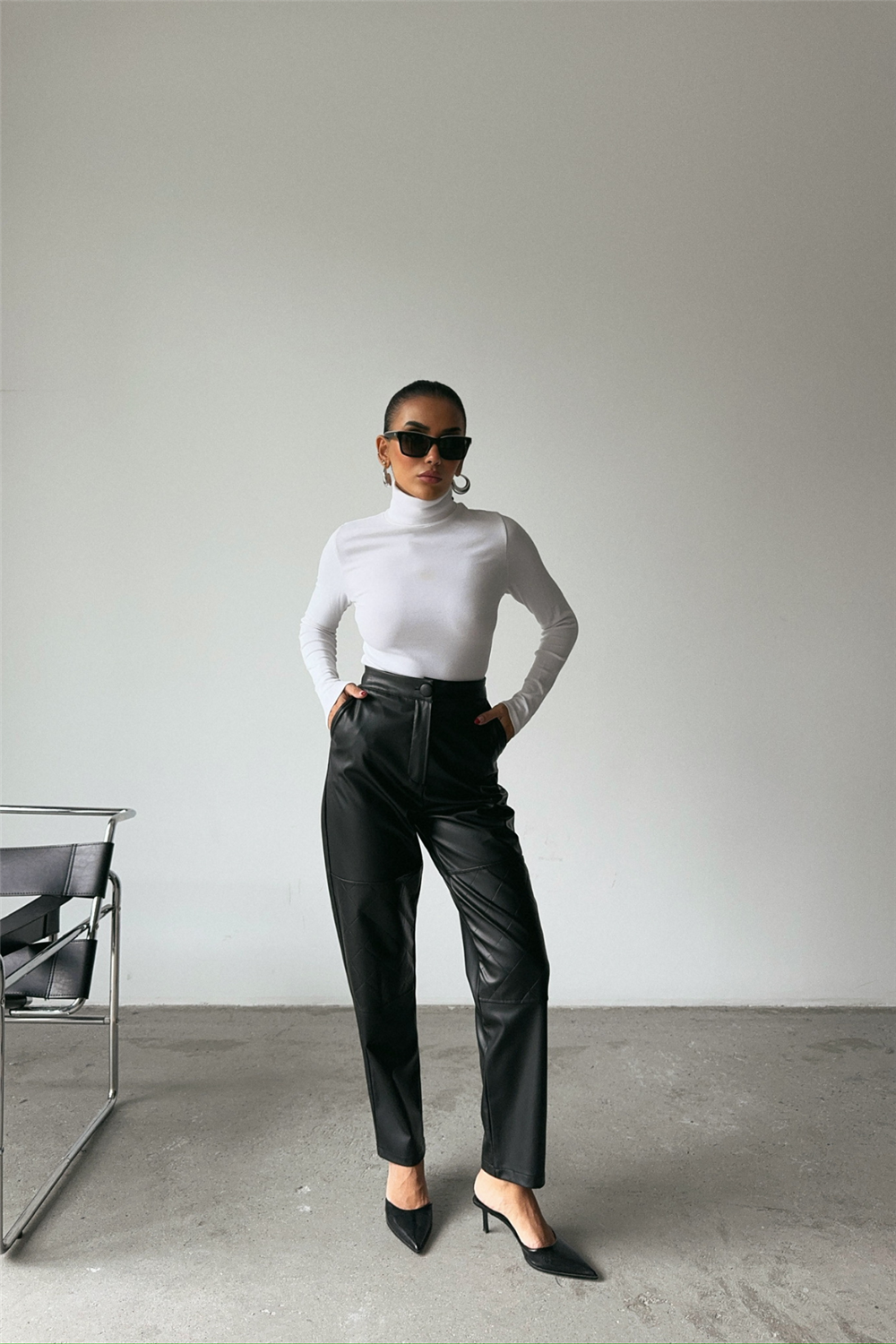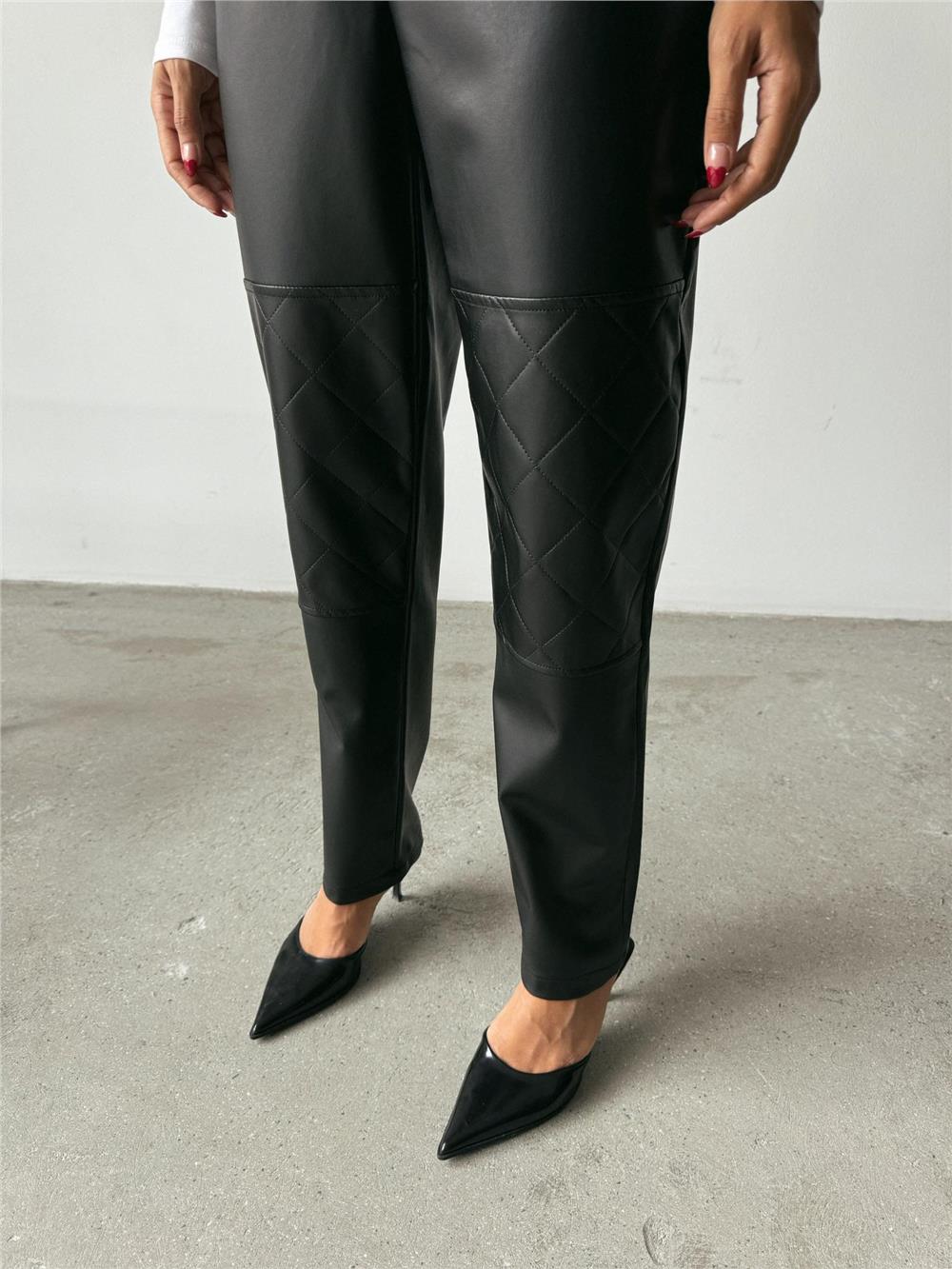 DERİ PANTOLON DİZ PARÇALI - Siyah