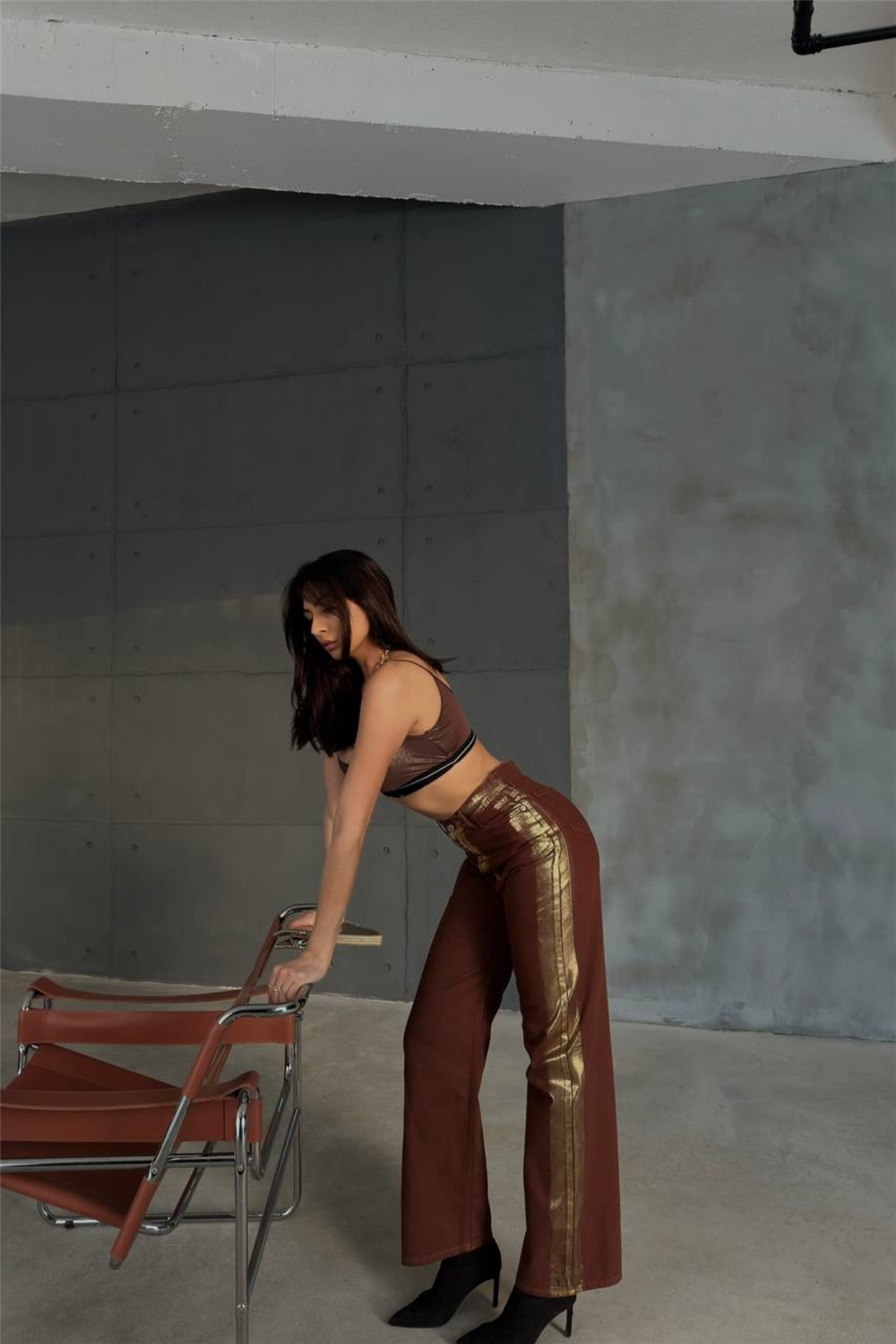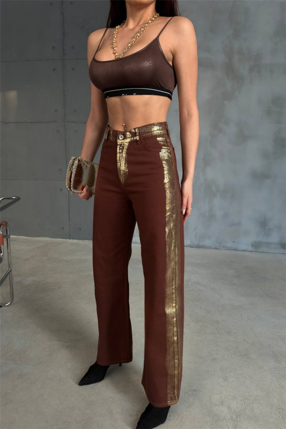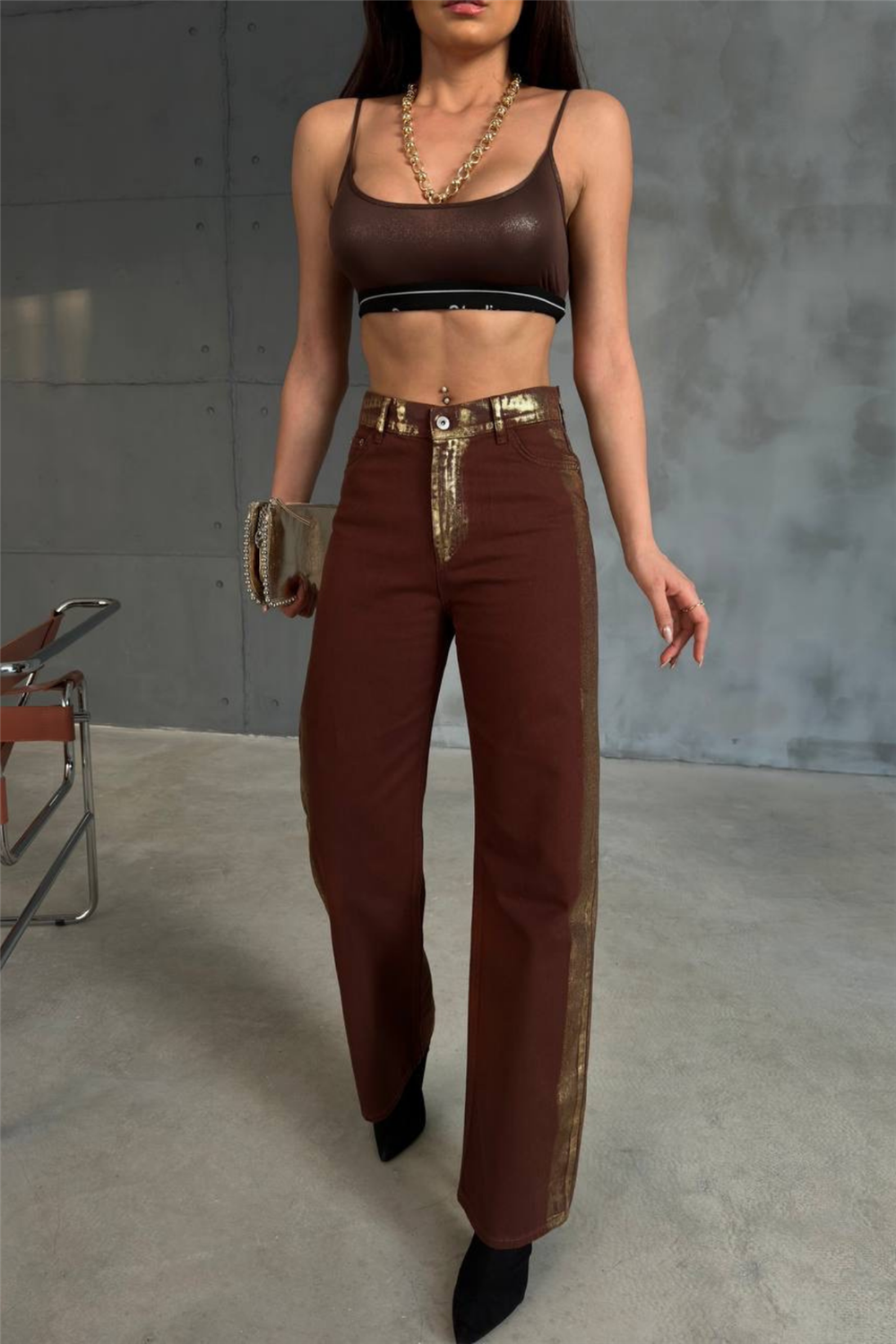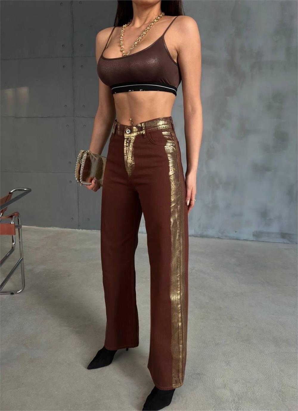 GABARDİN PALAZZO PANTOLON - Kahverengi