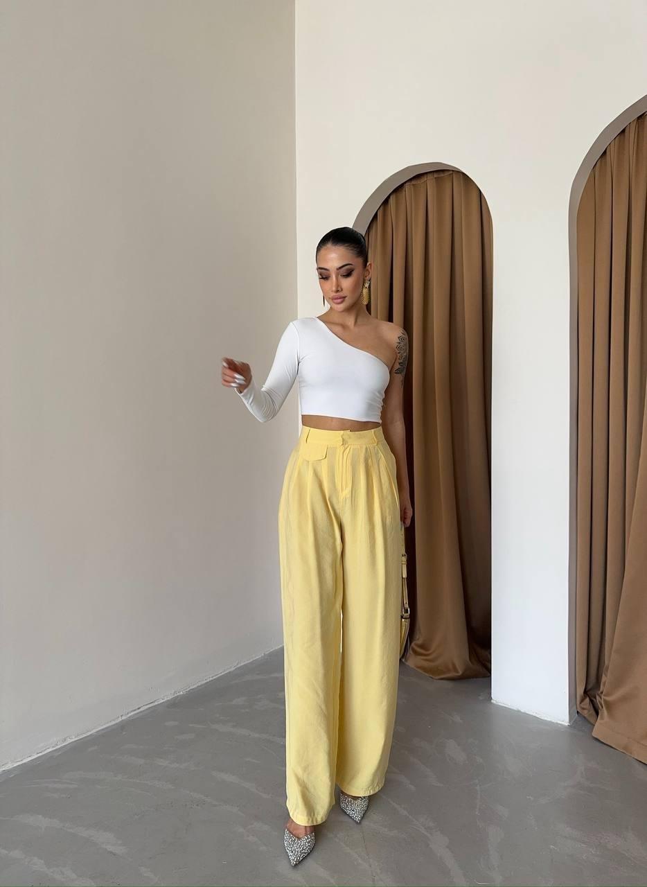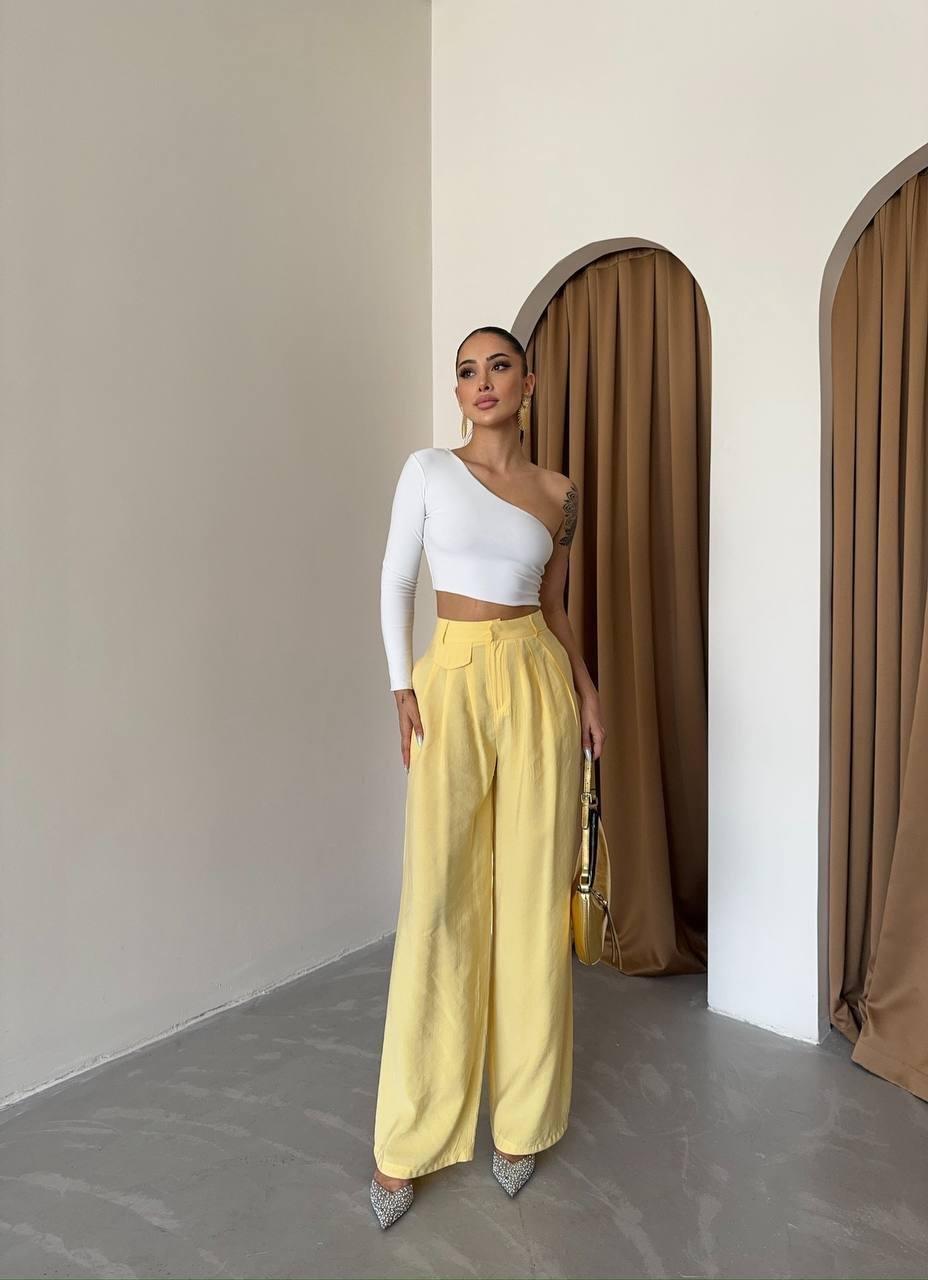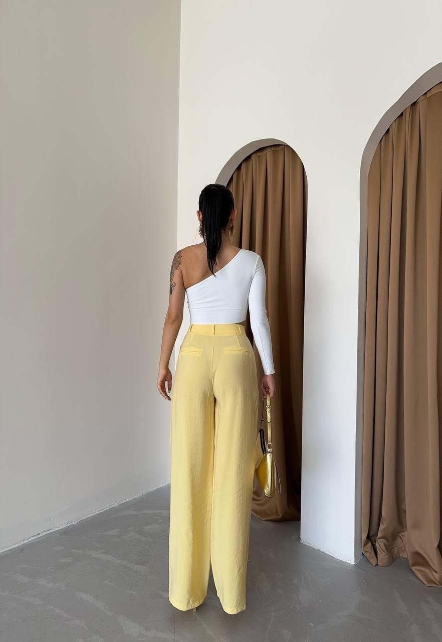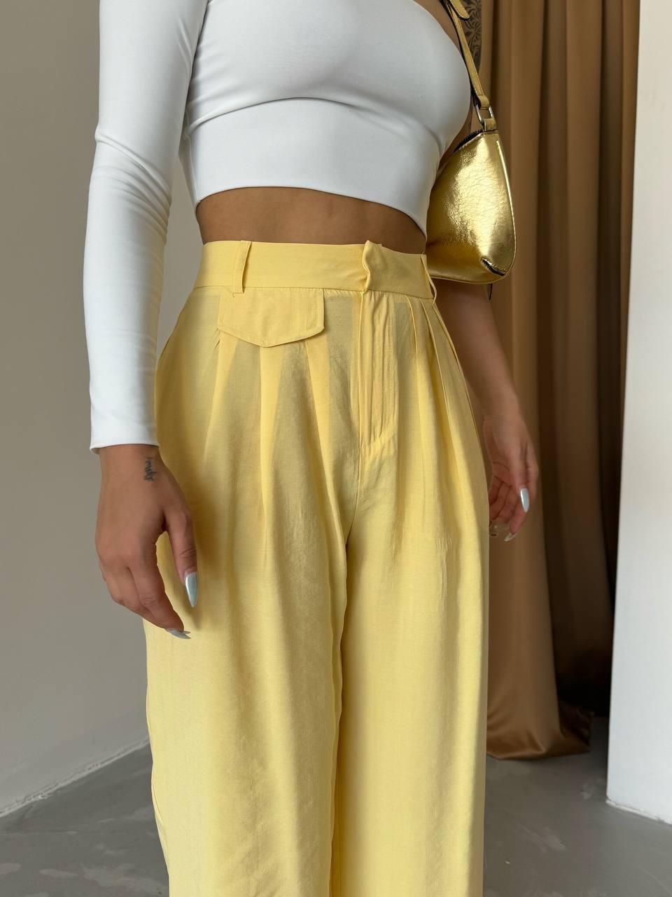 PİLE VE CEP KAPAK DEYALI SALAŞ PANTOLON - Sarı