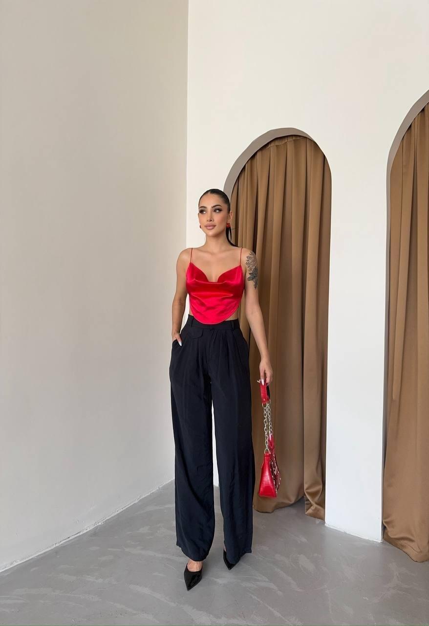 PİLE VE CEP KAPAK DEYALI SALAŞ PANTOLON - Siyah
