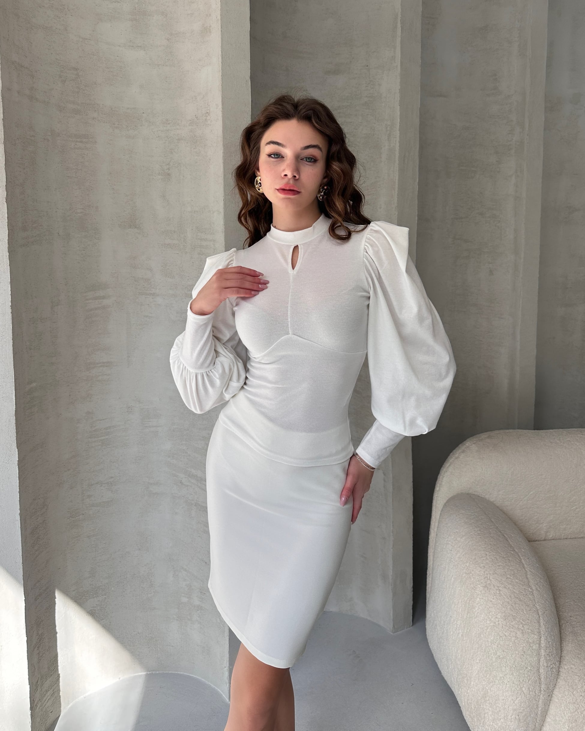 Ürün Adı :Öpücük Yaka Prenses Kol Crep Bluz