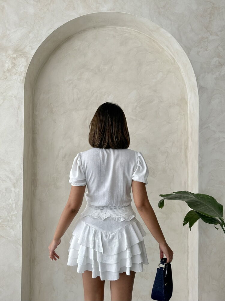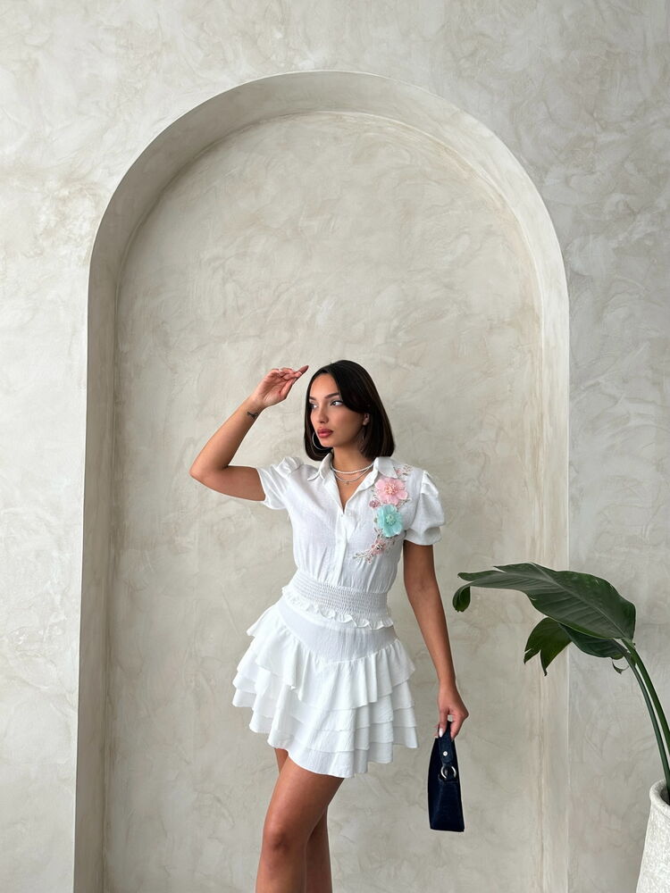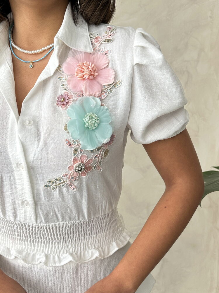 Topshow Krem Göğsü Çiçekli Keten Toptan Gömlek