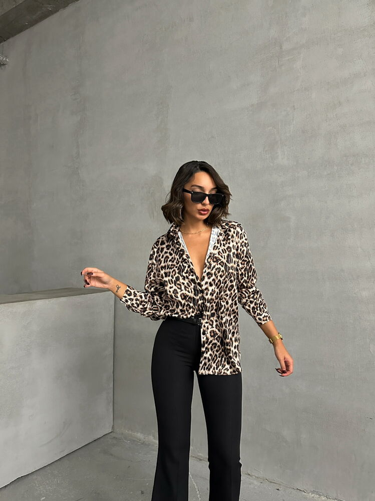 Topshow Leopar Leopar Desenli Toptan Gömlek