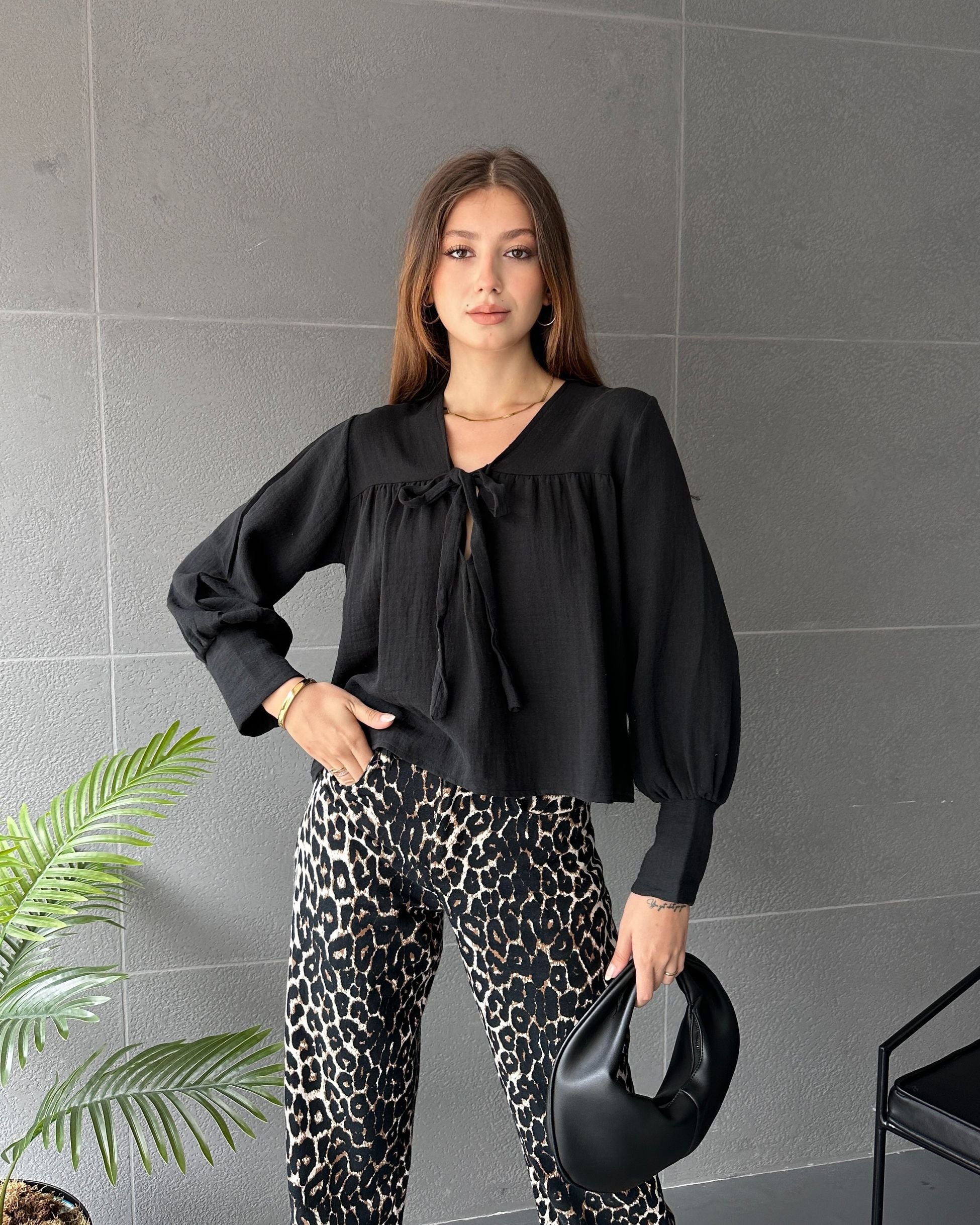 Ürün Adı :Yakası Bağlamalı Basic Krinkle Bluz